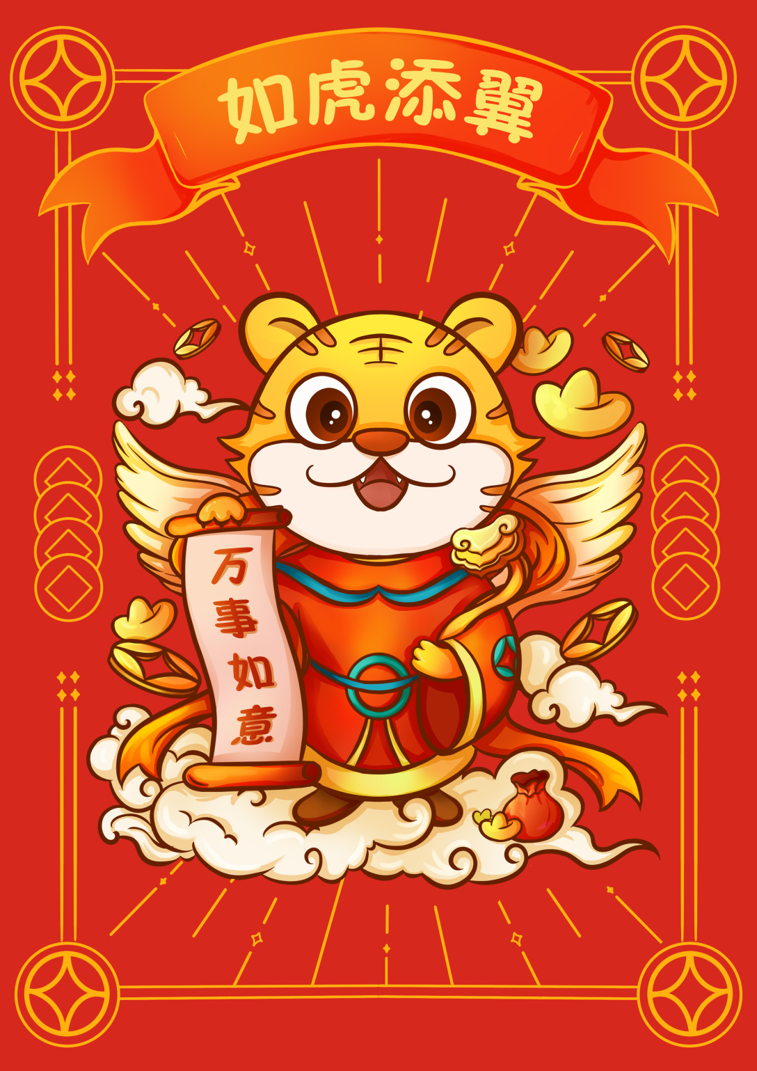 虎携祥瑞到人间,火火红红过大年。新年快乐!